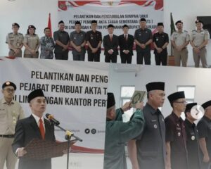 JABARPASS – Dalam rangka mewujudkan pelayanan pertanahan kepada masyarakat yang lebih merata, Kepala Kantor Pertanahan Kabupaten Cianjur, H. Ara Komara Sujana, S.H, M.Si., melantik dan mengangkat sumpah Pejabat Pembuat Akta Tanah Sementara (PPATS) bagi 6 (enam) Camat di daerah kerja Kabupaten Cianjur pada Kamis (05/03/2026).