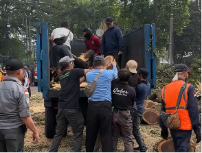 “Gerak cepat! Tim gabungan dari Diskar PB, DPKP, dan Dishub segera menangani pohon tumbang di Jalan Dago,”